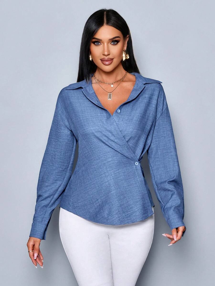 تصميم أنيق بلمسة لون أزرق عند الخصر