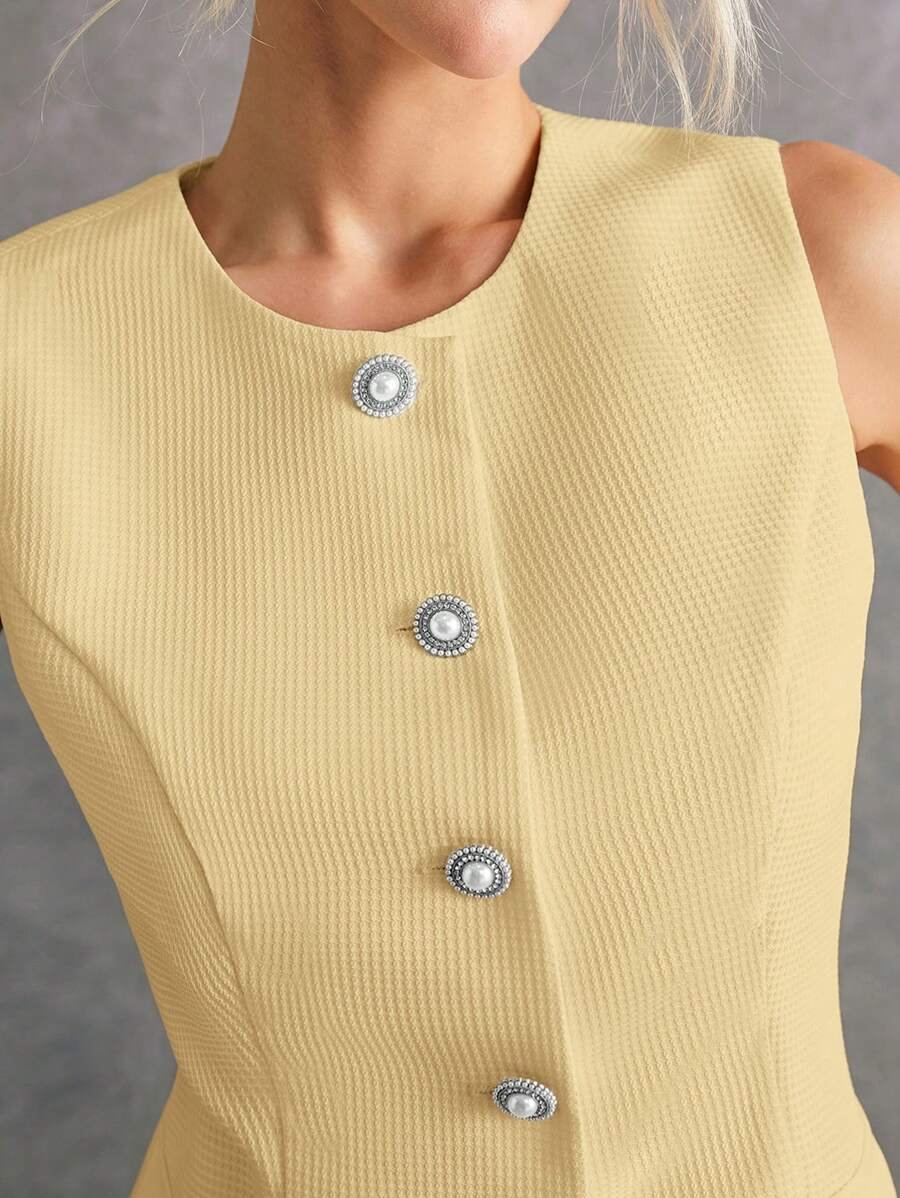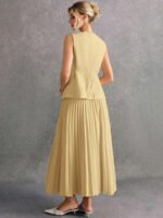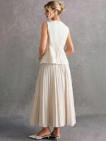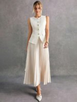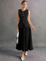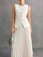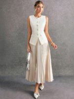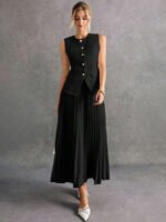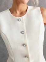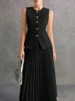 بدلة نسائية بدون أكمام وبنطلون بلون موحد