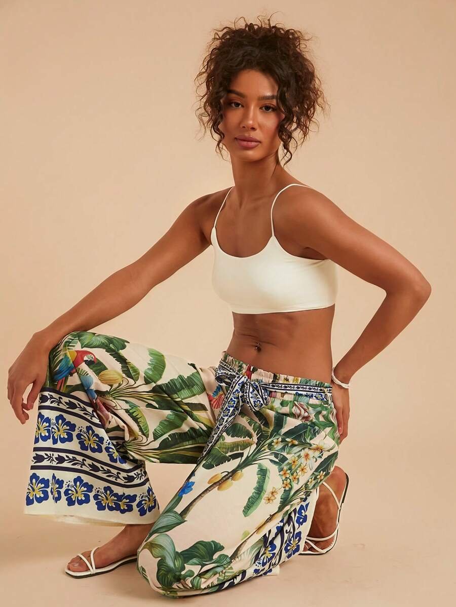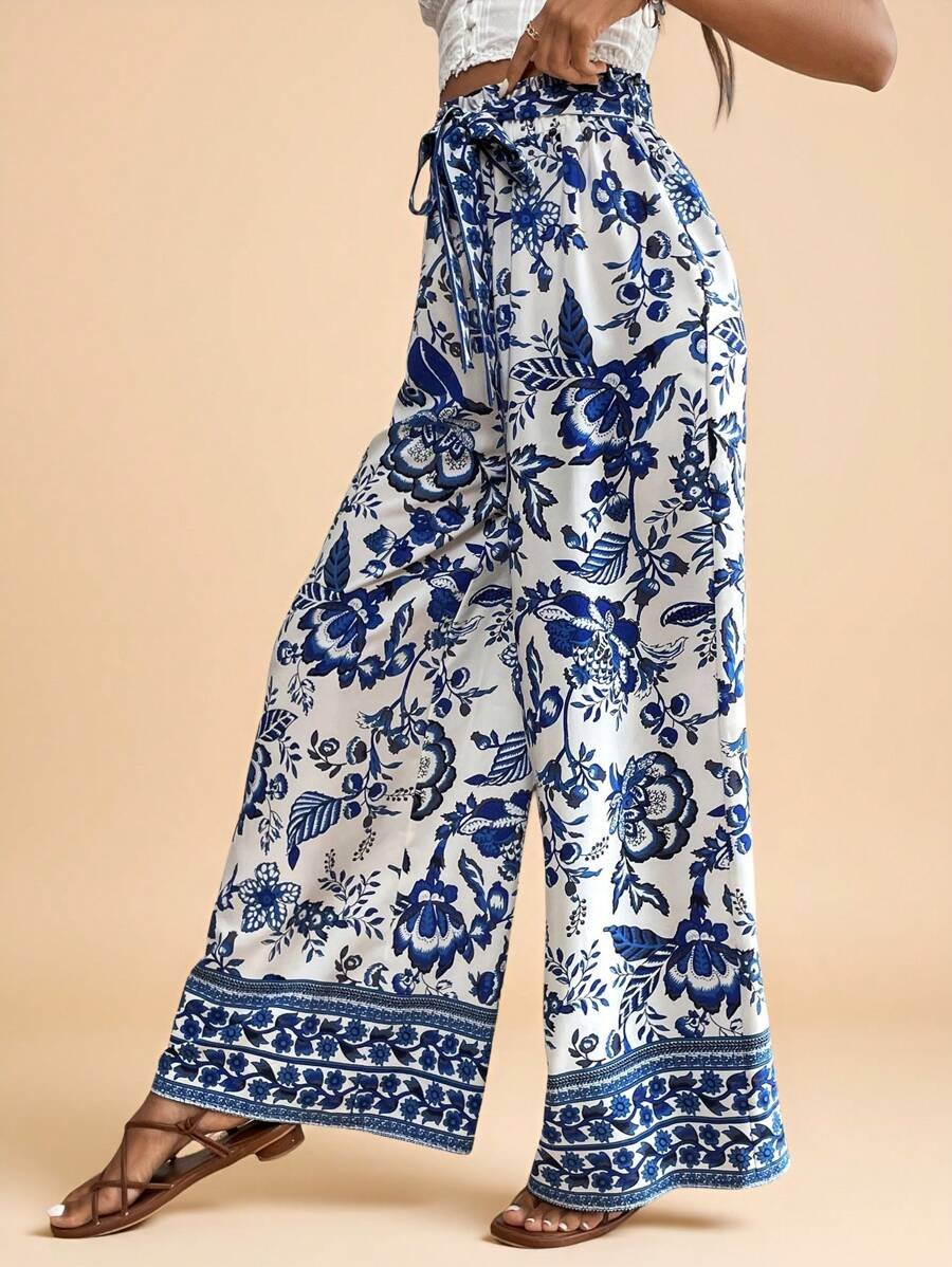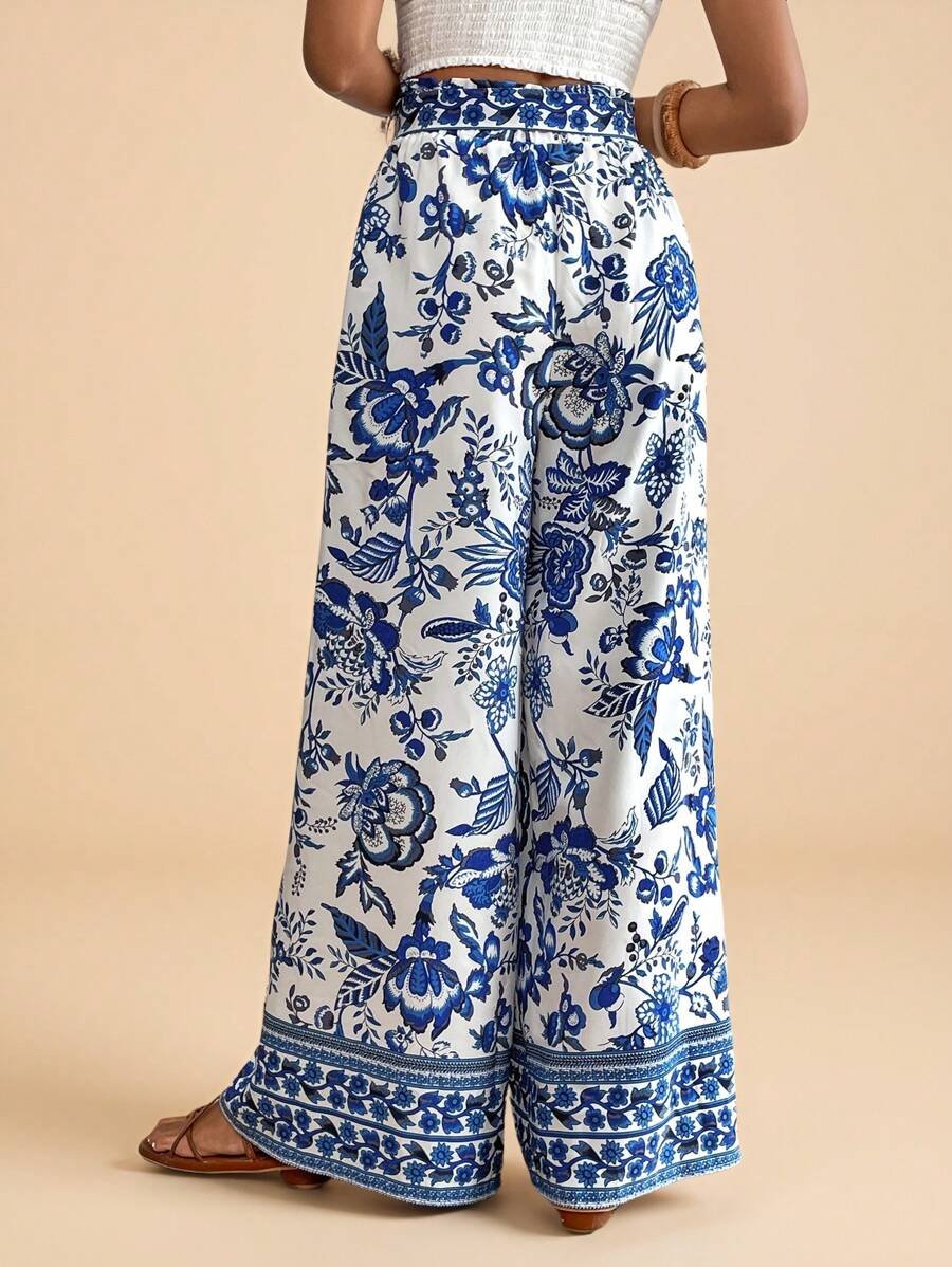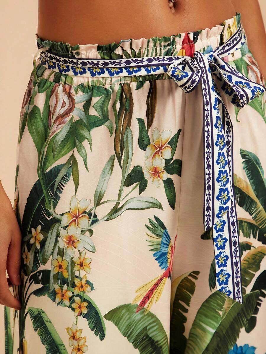 ارتقي بإطلالتك الصيفية مع هذا البنطلون المميز من Travachic، المصمم بساق واسعة تمنحك راحة وأناقة، وزخارف الأزهار الحالمة التي تضيف لمسة أنثوية جذابة. يأتي مع حزام أنيق يحدد الخصر ويُكمل مظهرك بكل انسيابية.