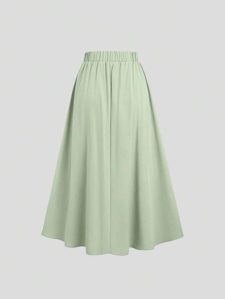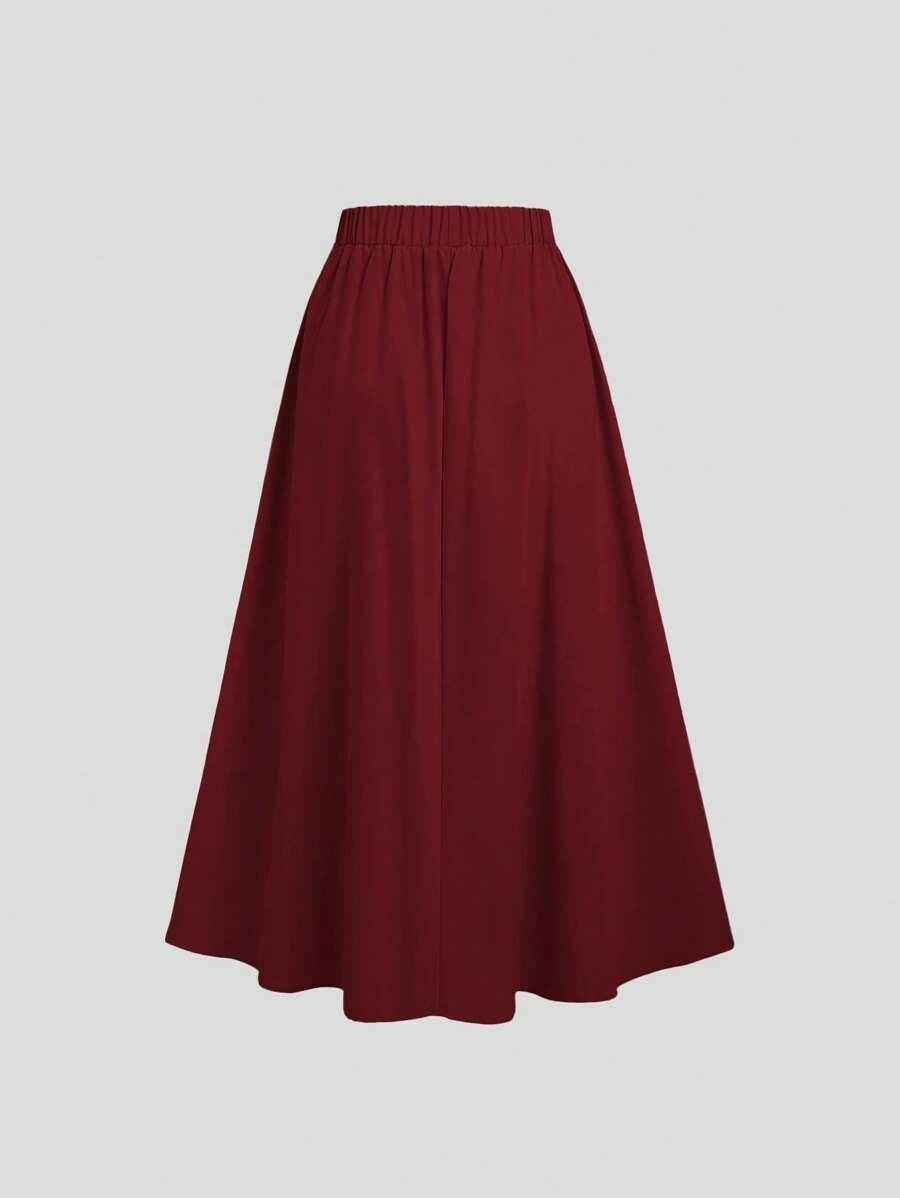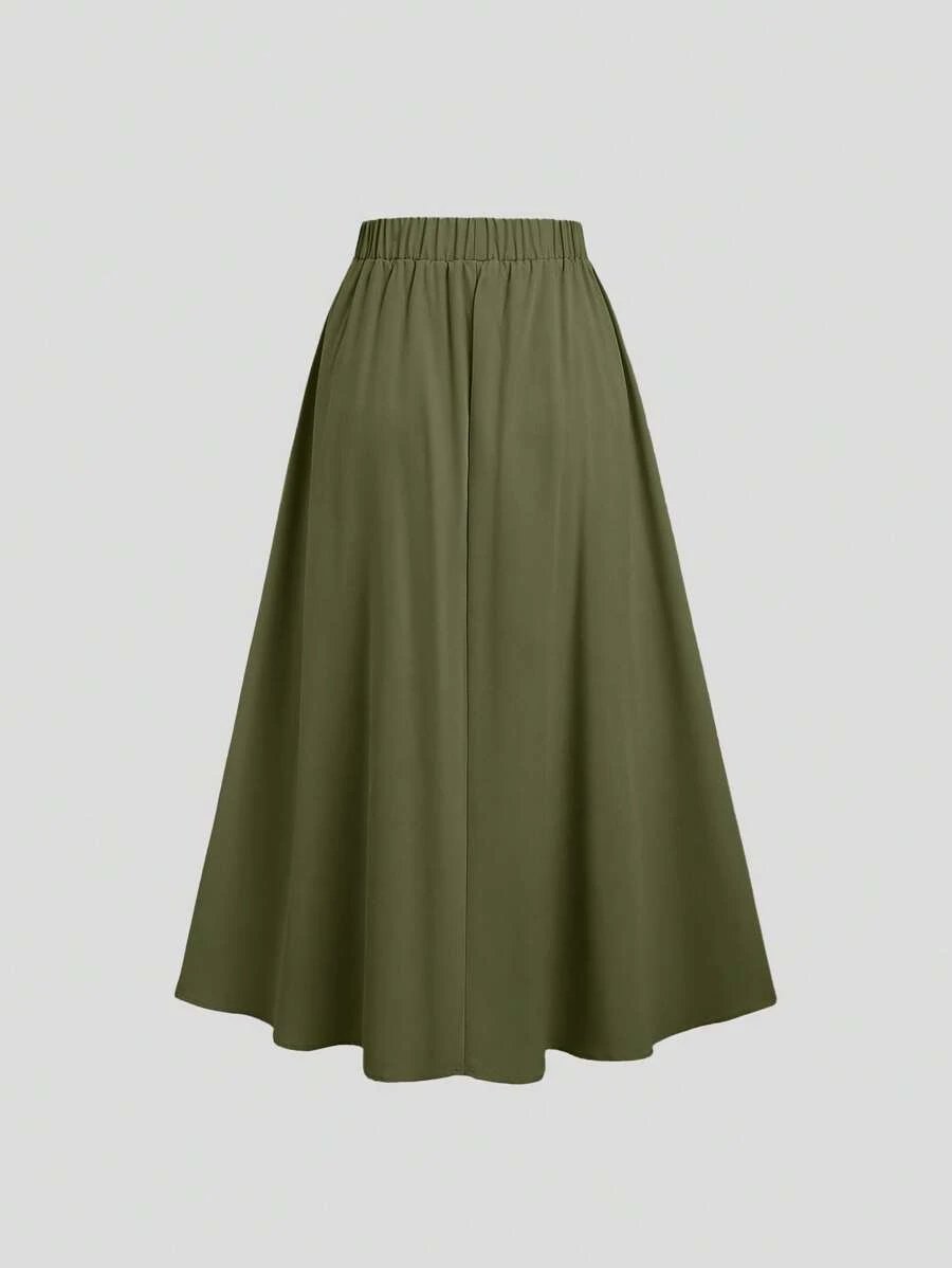 تنورة ميدي مجعّدة بأزرار معدنية أنيقة