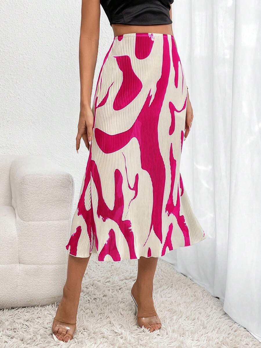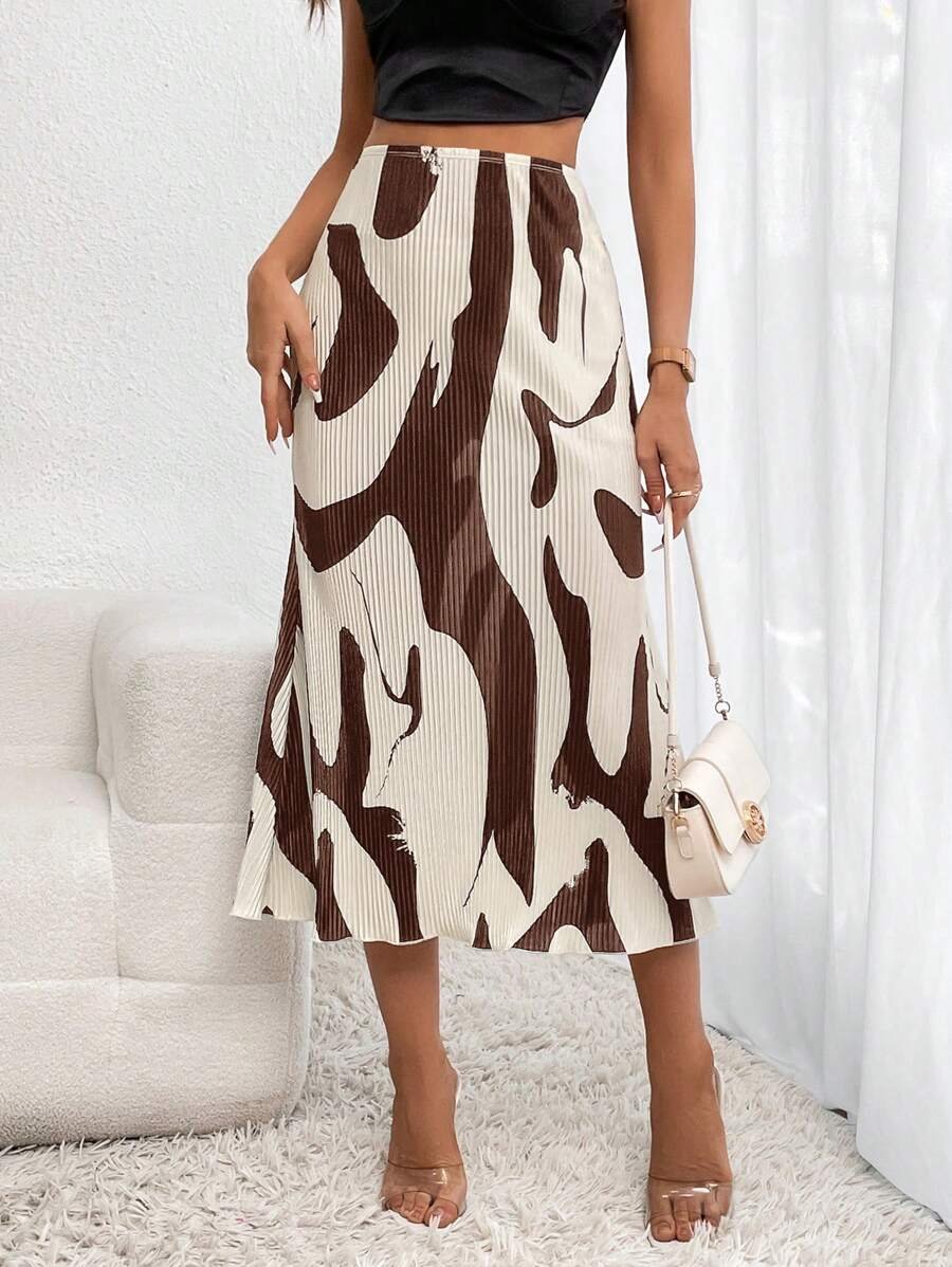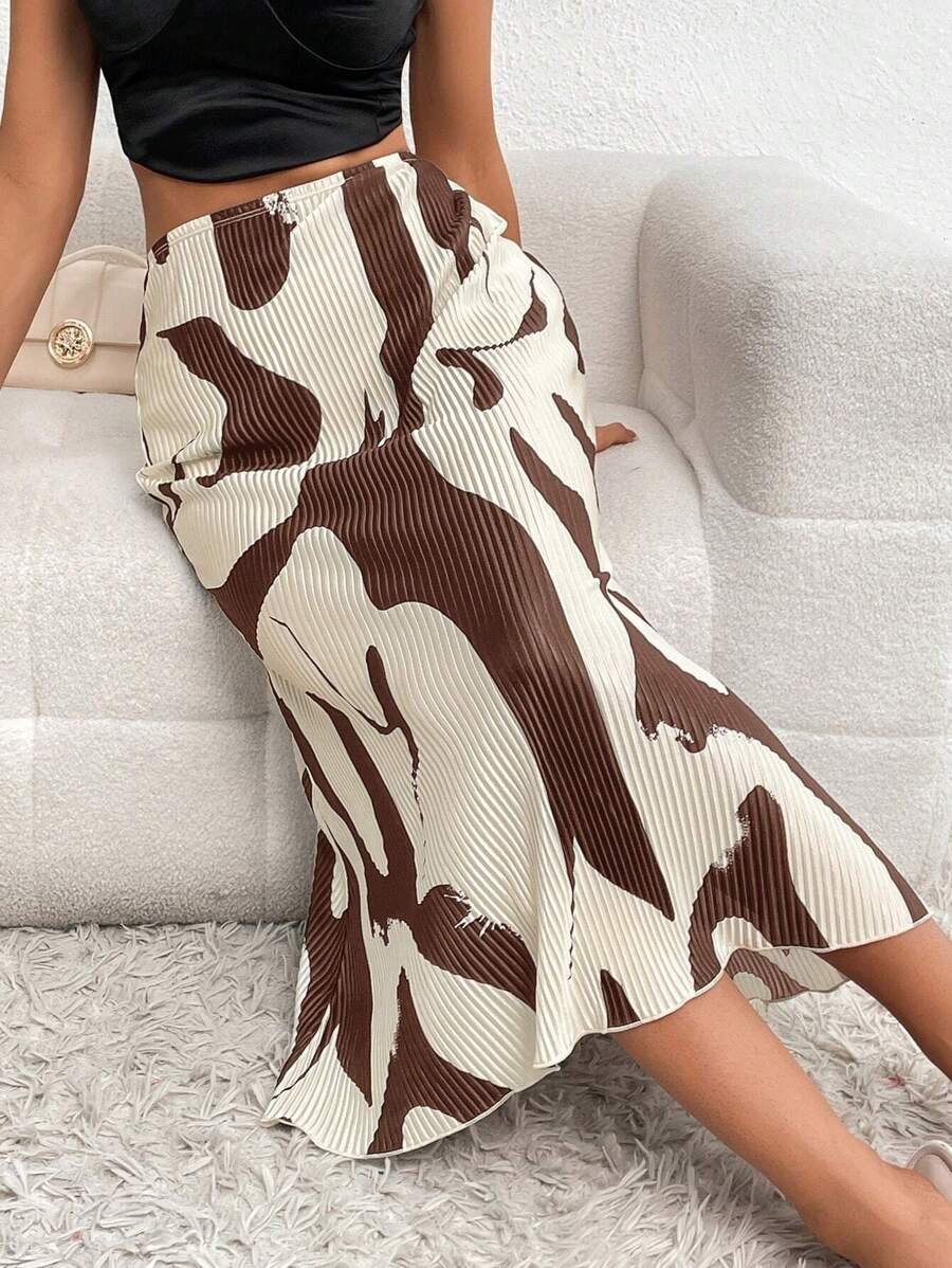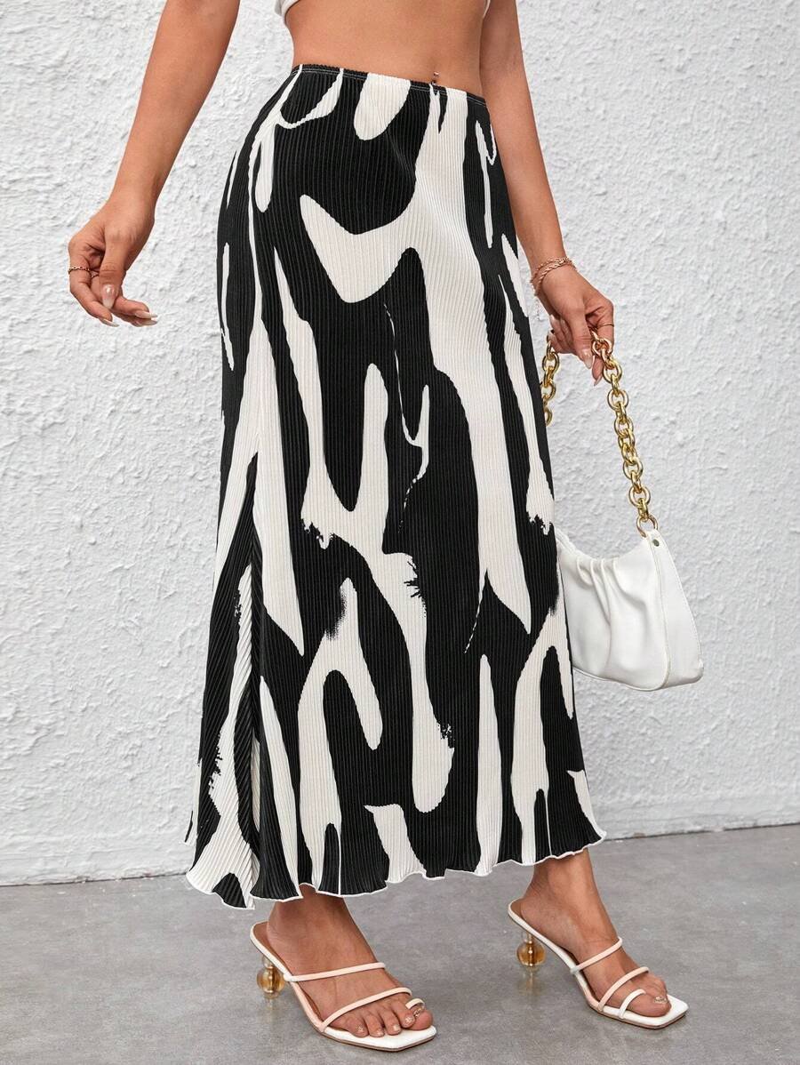 تنورة مطبوعة بنقوش متجعّدة أنيقة