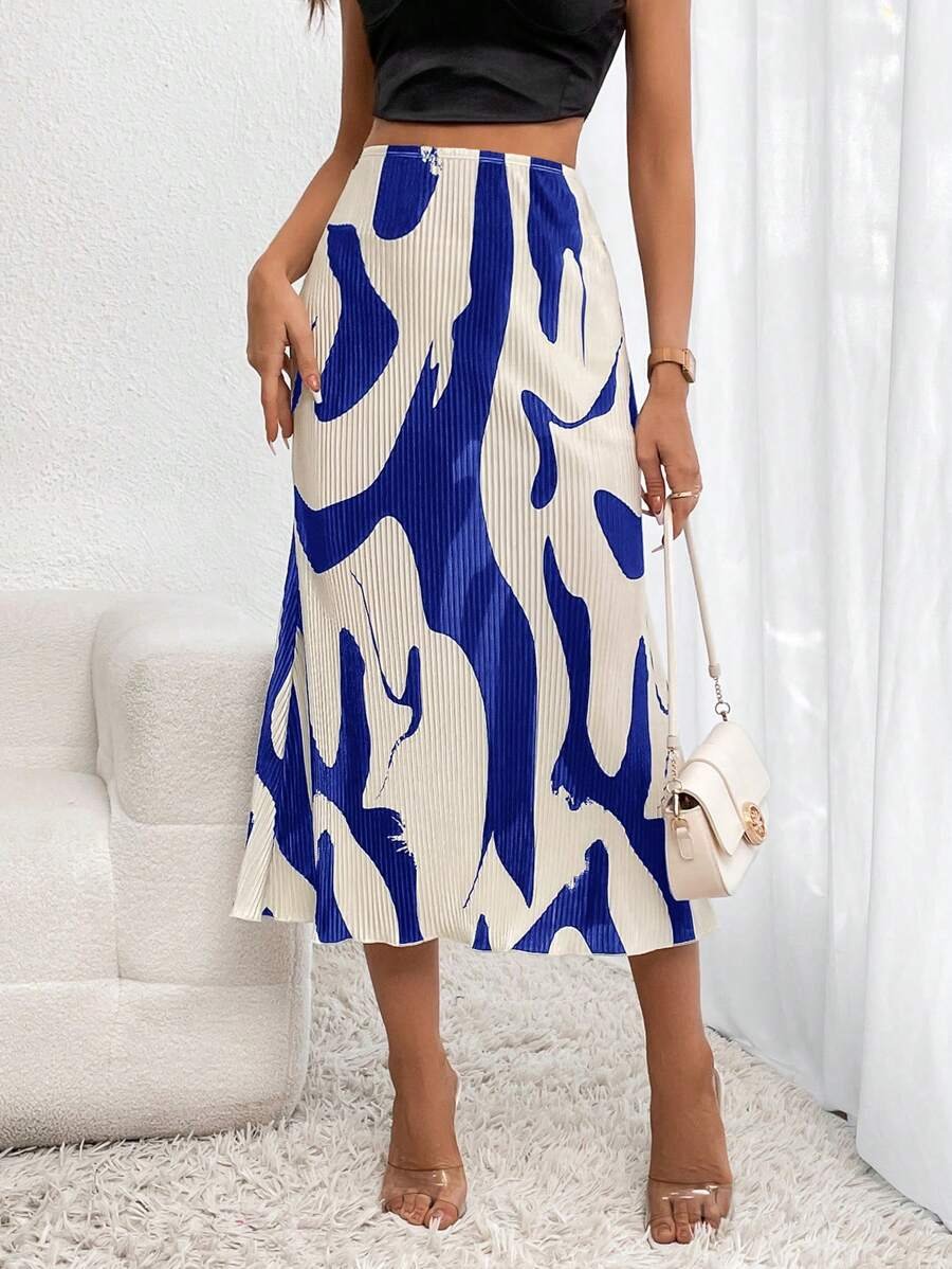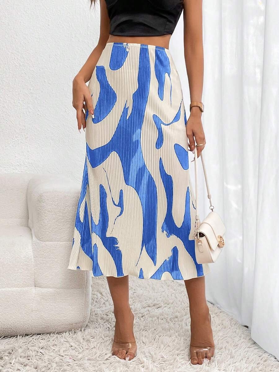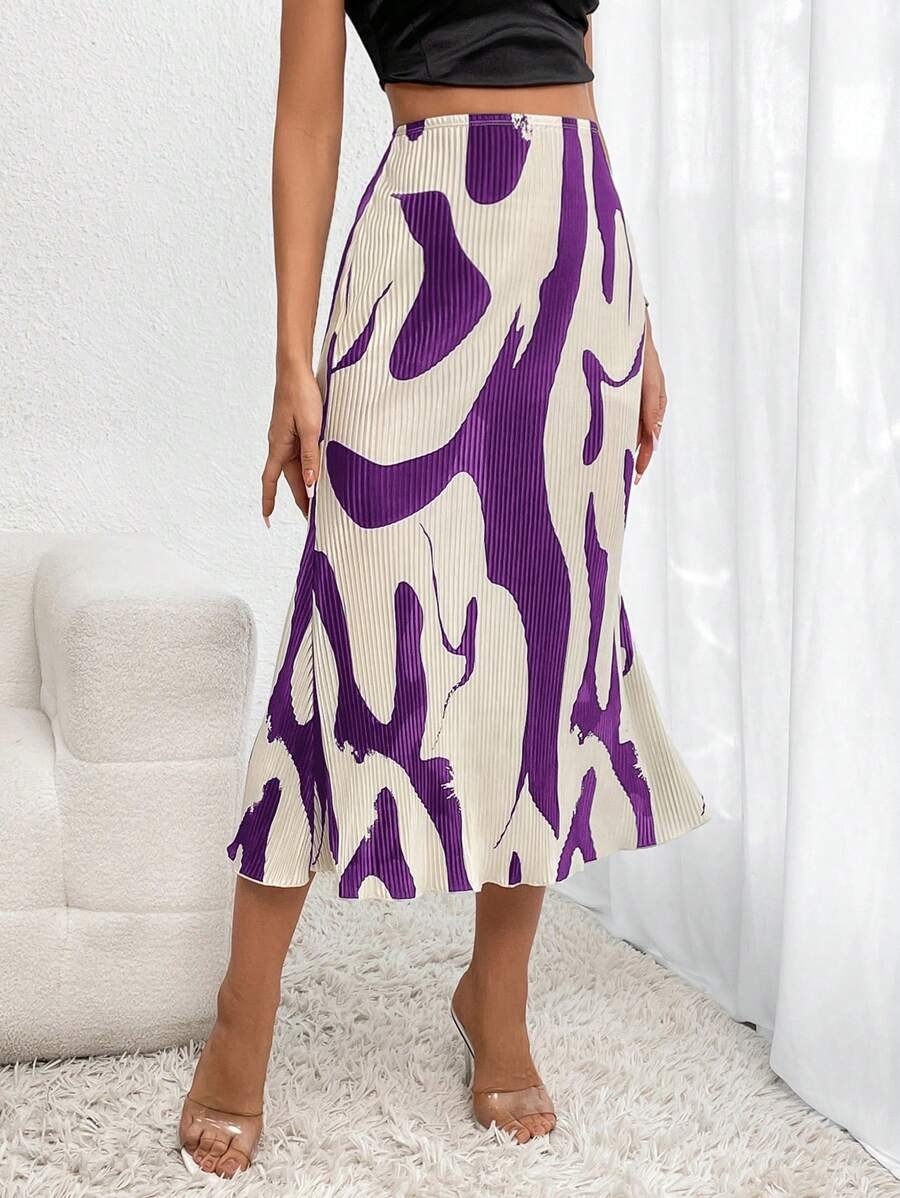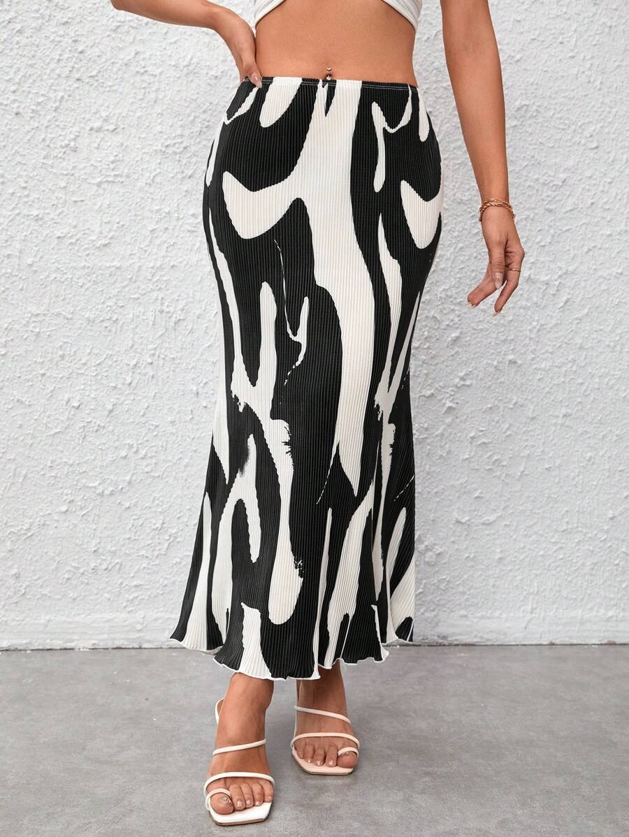 تنورة مطبوعة بنقوش متجعّدة أنيقة