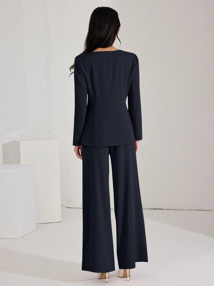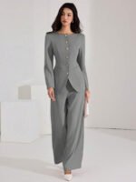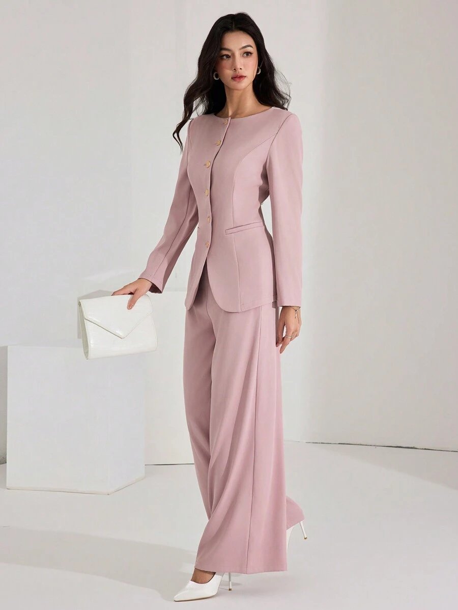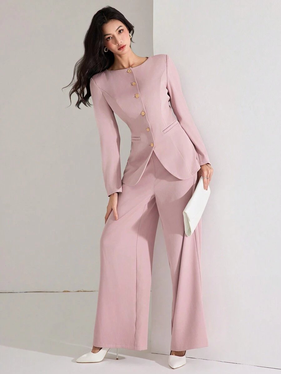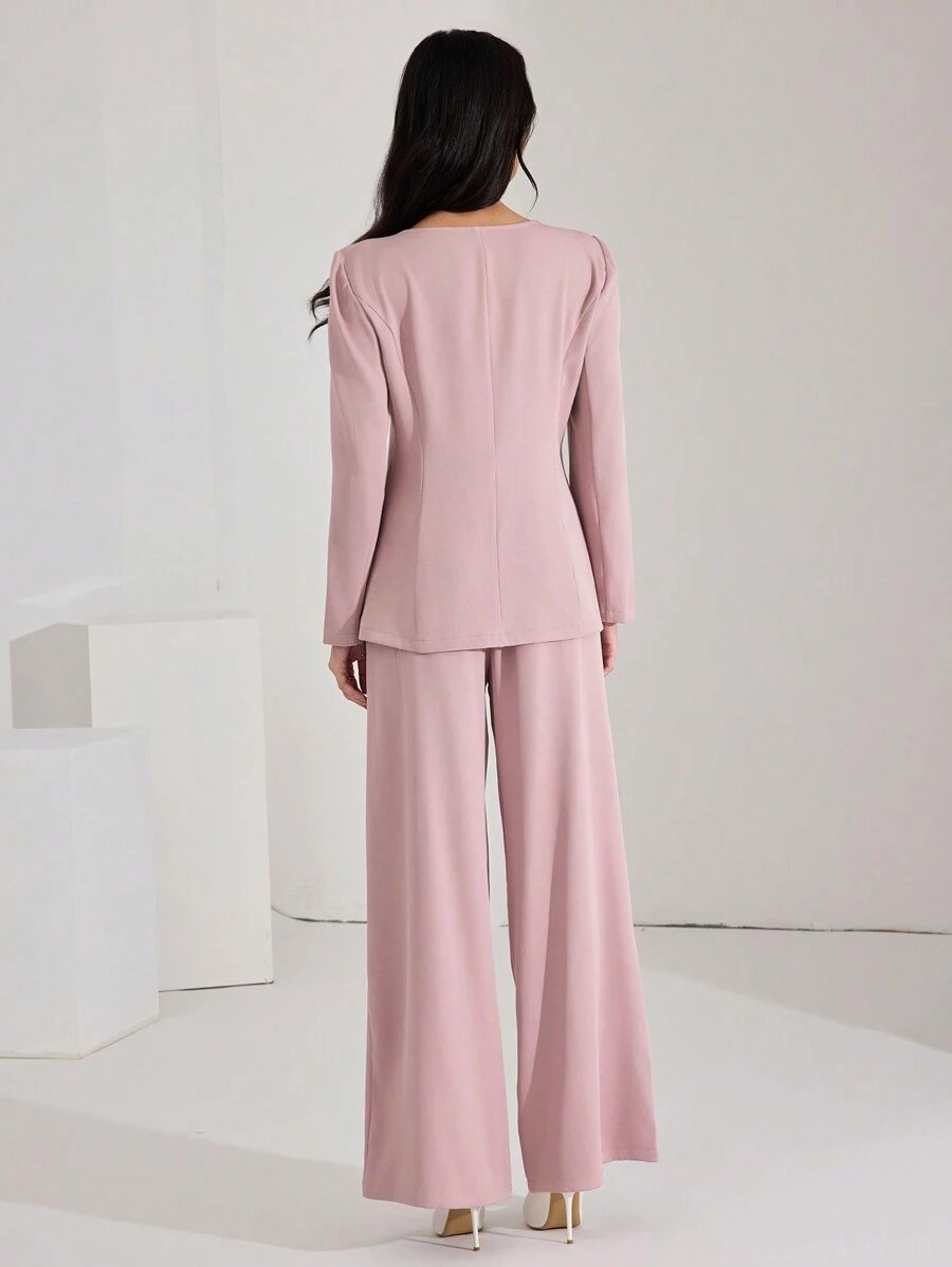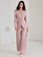 بدلة نسائية بدون أكمام وبنطلون بلون موحد