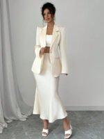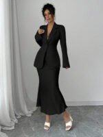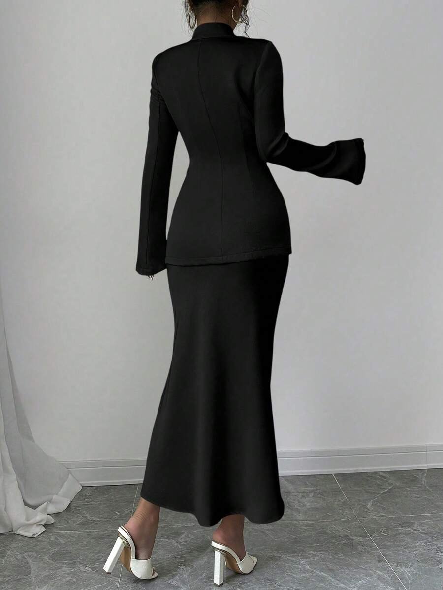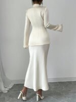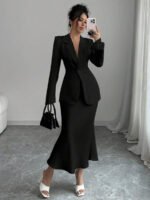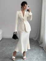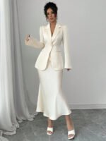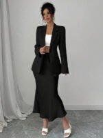 تميّزي بإطلالة راقية مع طقم Elenzga الذي يجمع بين البساطة والفخامة. يتكوّن من قميص بلون موحد بأكمام طويلة، وتنورة على شكل A تضفي لمسة أنثوية وانسيابية على مظهرك. مثالي للعمل، المناسبات، أو الإطلالات اليومية الأنيقة.