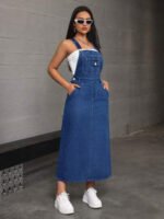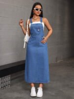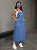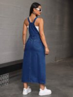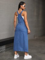 فستان جينز بدون أكمام بجيب