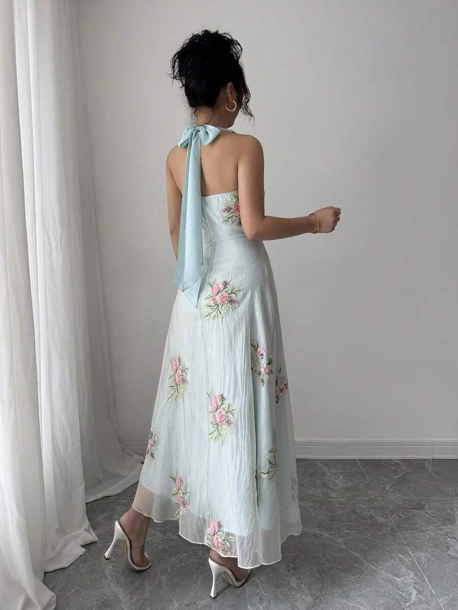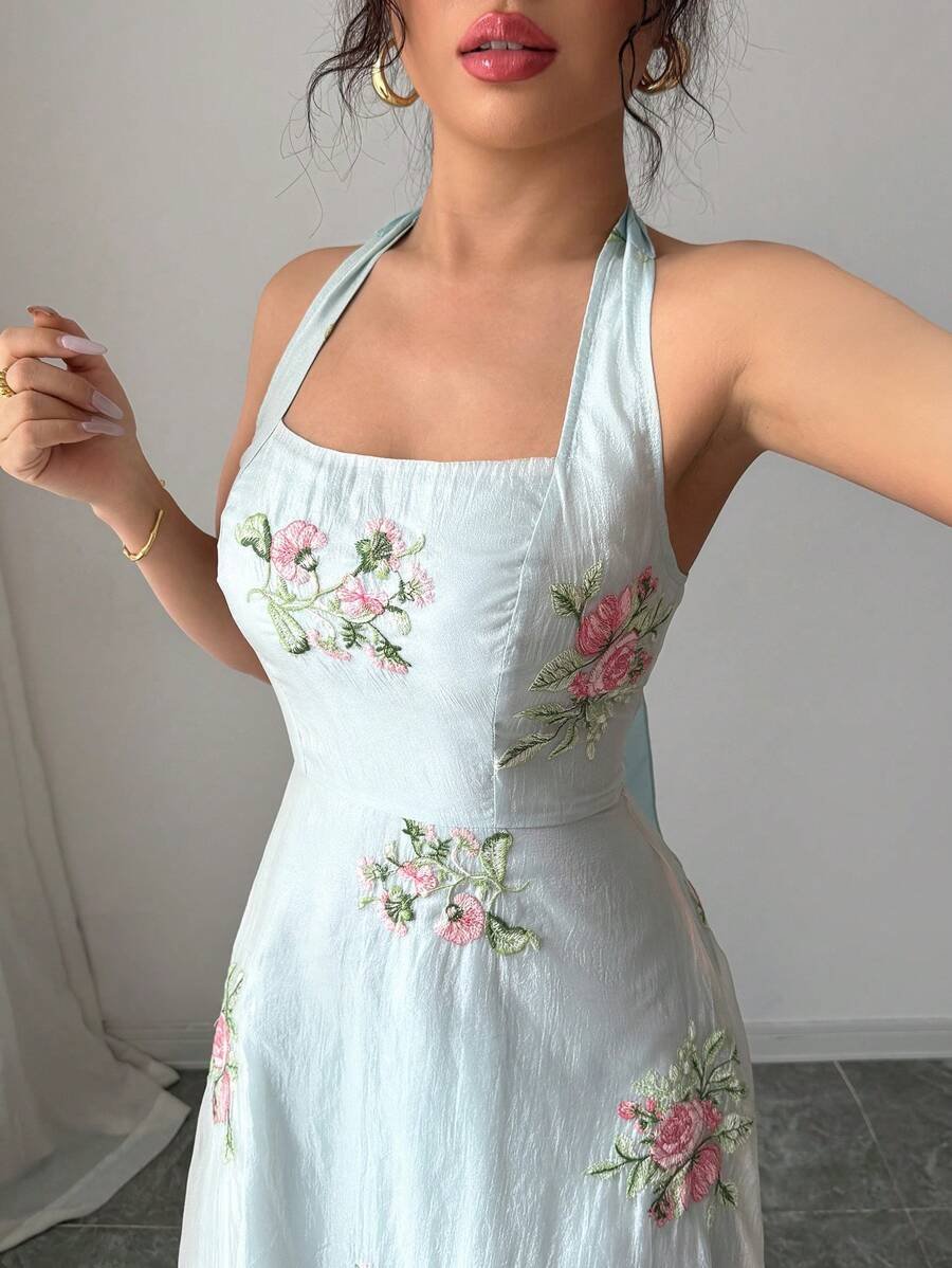 تطريز فاخر على الياقة بتفاصيل زهرية