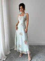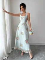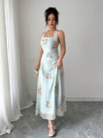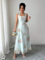 تألقي بجاذبية راقية مع فستان Elenzga المصمم بإتقان ليمنحك لمسة من الأناقة الكلاسيكية. يتميز بياقة مزينة بزخارف زهرية مطرزة تضيف سحرًا أنثويًا ناعمًا، بينما يعكس التصميم البسيط روح الفخامة الهادئة.