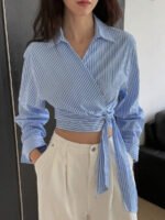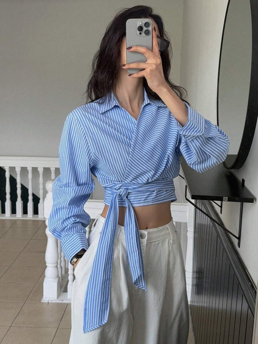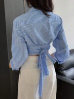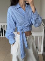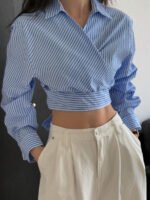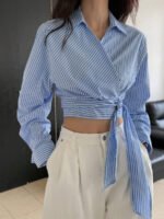 تميّزي بإطلالة أنيقة وعصرية مع هذا القميص النسائي من DAZY بلونه الأبيض المخطط بتفاصيل مخرمة راقية. يتميز بتصميم أنثوي أنيق يضفي لمسة ناعمة ومميزة على إطلالتك، ويأتي مزوّدًا بحزام قابل للفك يحدد الخصر ويمنحك حرية في تنسيق المظهر، سواء بإطلالة رسمية أو كاجوال.