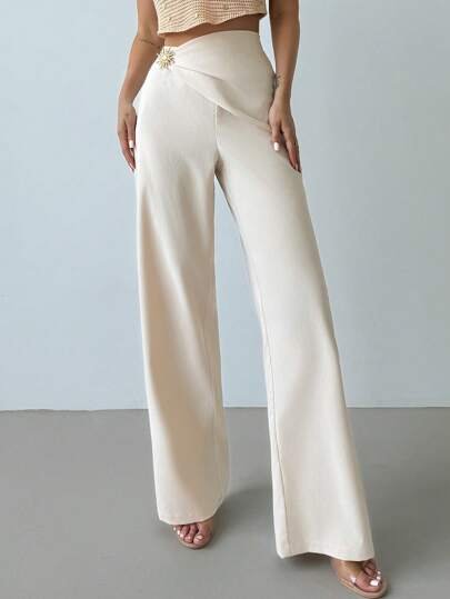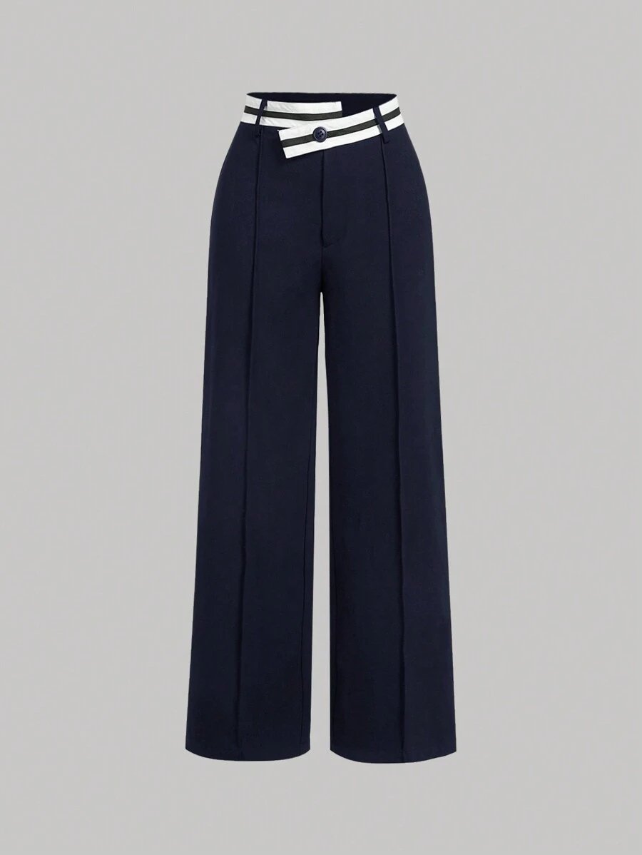 SHEIN MOD بنطلون نسائي قابل للاستخدام المتعدد بخصر غير متماثل، بأسلوب الكلاسيكي الرجعي